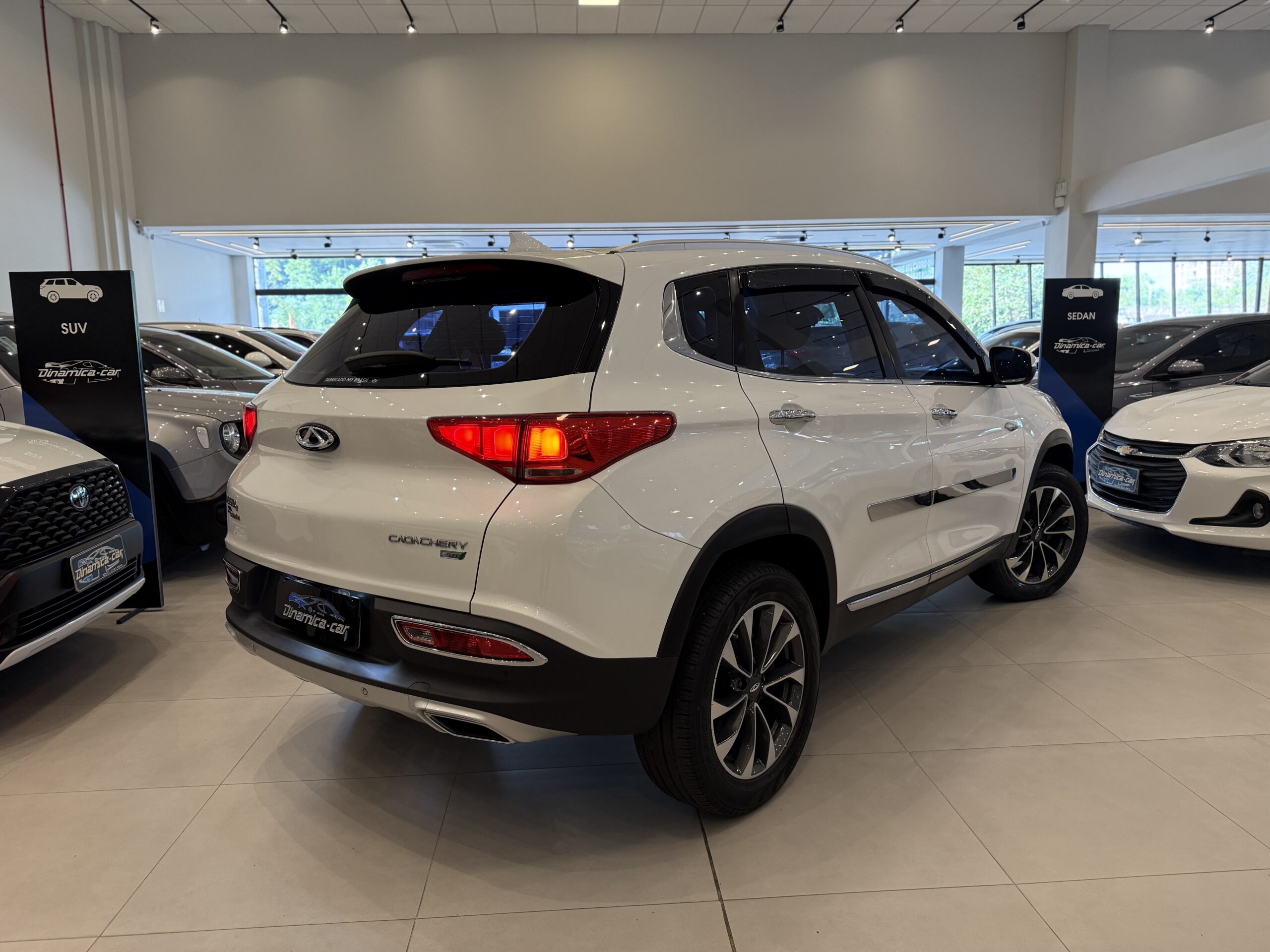 O Tiggo 7 2022 ainda carrega a identidade visual anterior à atualização “Pro”, mas nem por isso carece de modernidade. O visual é imponente, caracterizado por: