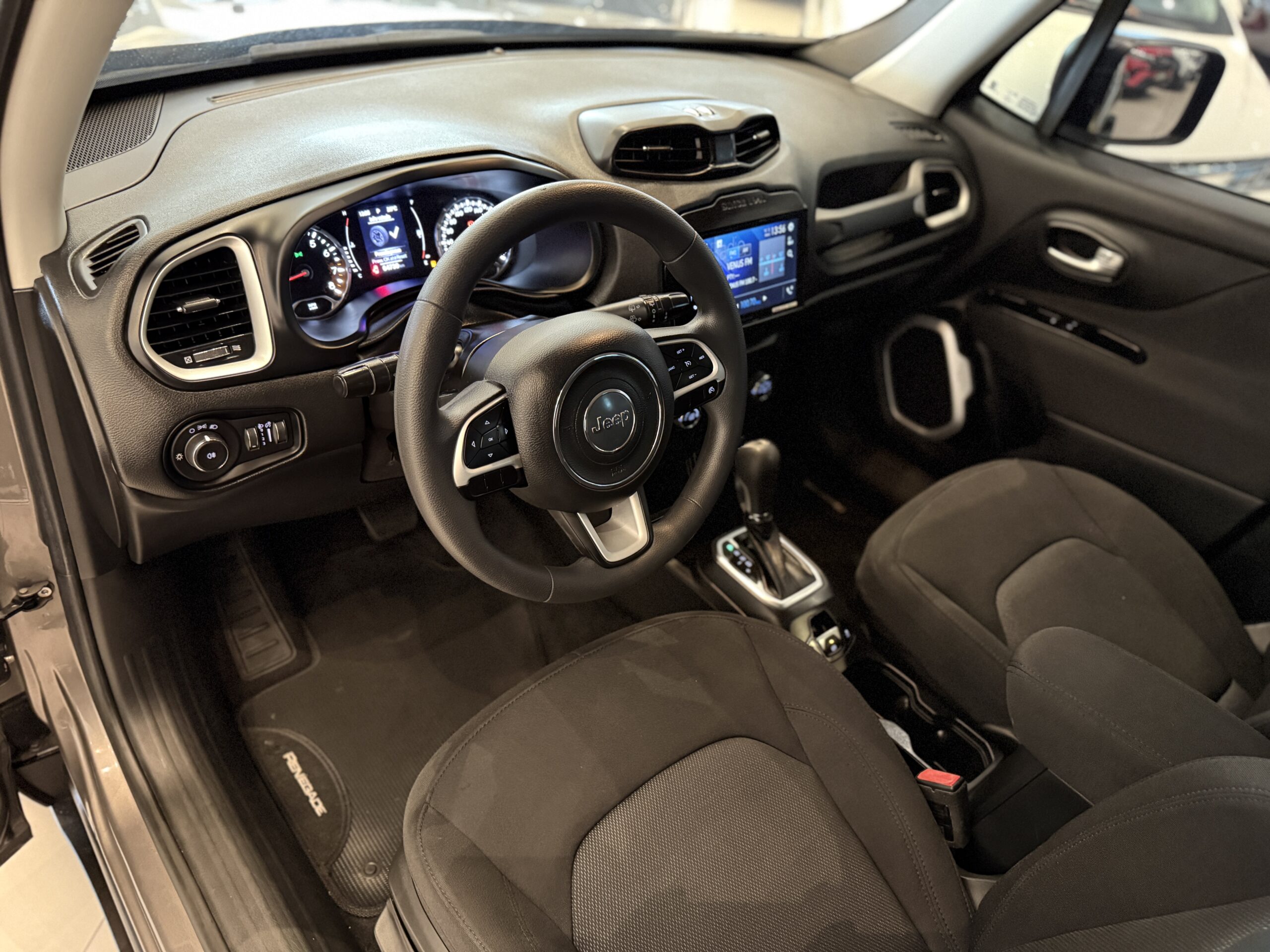 No interior, o Renegade se destaca pelo uso de materiais soft-touch (macios ao toque) no painel, algo raro em uma categoria dominada por plásticos rígidos.